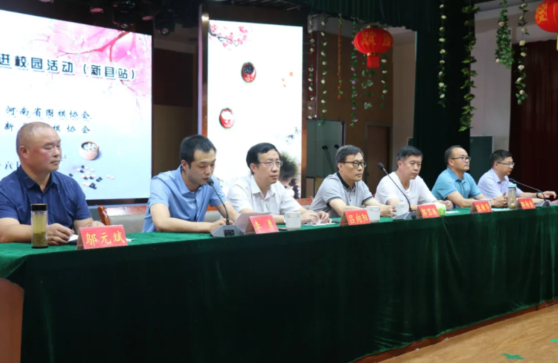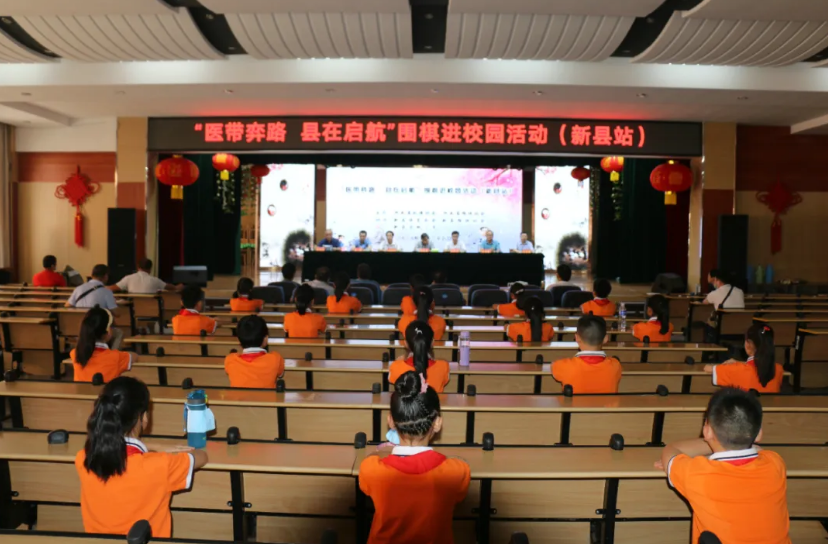 6月26日下午,由河南省抗癌协会和河南省围棋协会联合主办的“医带弈路 县在启航”围棋进校园活动在新县宏桥小学多功能报告厅举行。河南省工程学院经贸学院院长郭宝林、河南省著名画家张新华、郑州市联通公司副总经理吕向阳、新县体育运动中心主任李勇、新县教育局招考服务中心主任邵传金、新县围棋协会副会长邬元斌,宏桥小学校长吴国富出席此次活动,新县围棋协会部分会员、宏桥小学部分师生参加了此次活动。
